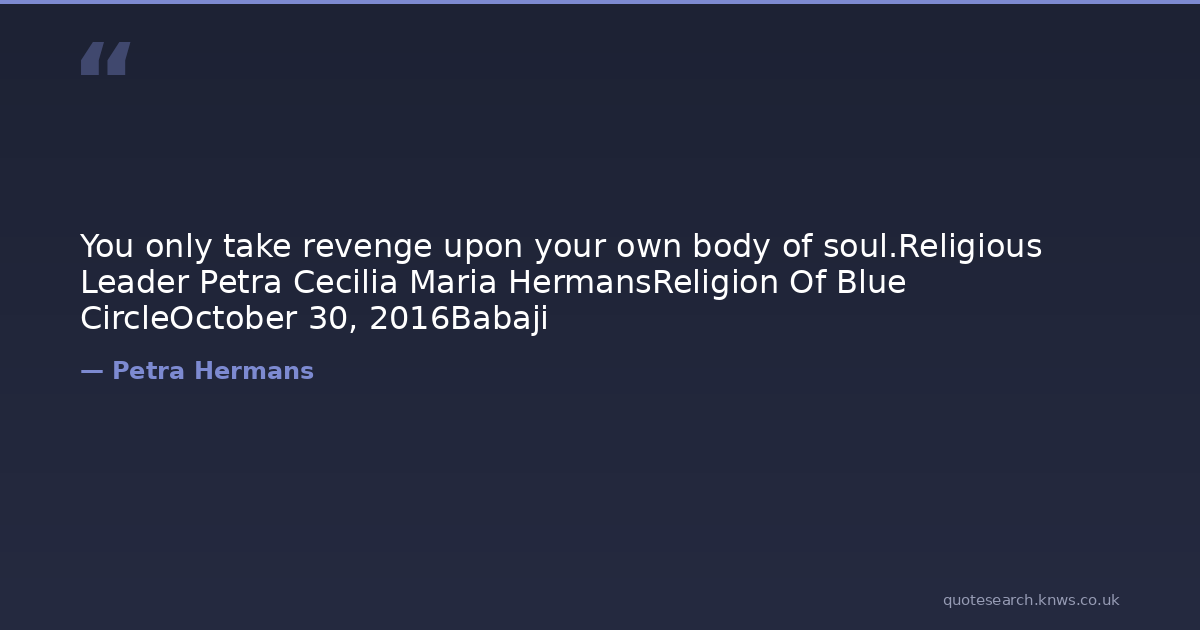 You only take revenge upon your own body of soul.Religious Leader Petra Cecilia Maria HermansReligion Of Blue CircleOctober 30, 2016Babaji