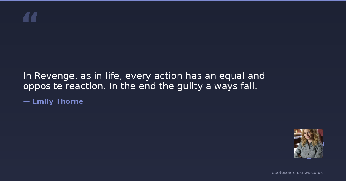In Revenge, as in life, every action has an equal and opposite reaction. In the end the guilty always fall.