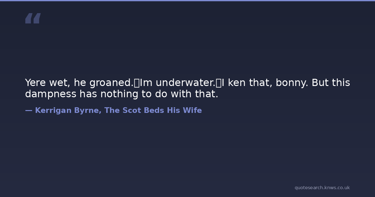 Yere wet, he groaned. Im underwater. I ken that, bonny. But this dampness has nothing to do with that.