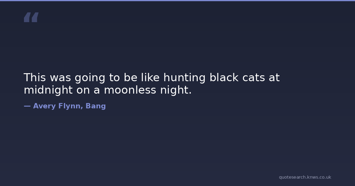 This was going to be like hunting black cats at midnight on a moonless night. romantic-suspense Download Image Share on X Share on Facebook Copy Link