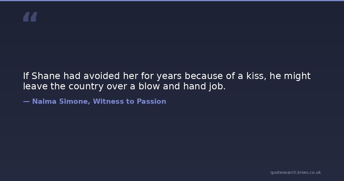 If Shane had avoided her for years because of a kiss, he might leave the country over a blow and hand job.