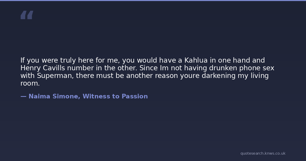 If you were truly here for me, you would have a Kahlua in one hand and Henry Cavills number in the other. Since Im not having drunken phone sex with Superman, there must be another reason youre darkening my living room.