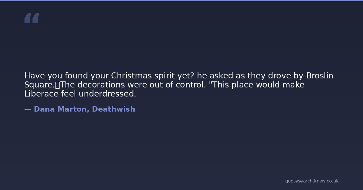Have you found your Christmas spirit yet? he asked as they drove by Broslin Square. The decorations were out of control. "This place would make Liberace feel underdressed.