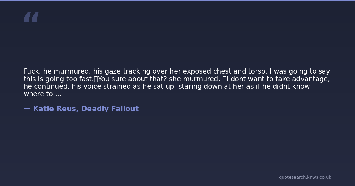 Fuck, he murmured, his gaze tracking over her exposed chest and torso. I was going to say this is going too fast. You sure about that? she murmured. I dont want to take advantage, he continued, his voice strained as he sat up, staring down at her as if he didnt know where to start. Reaching behind her back, she unsnapped her black bra and let it slide down her arms as she sat half up. Then let me take advantage of you.