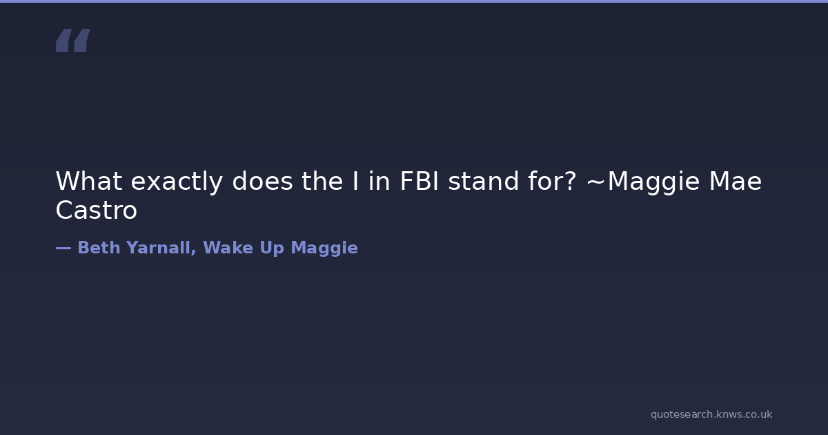 What exactly does the I in FBI stand for? ~Maggie Mae Castro