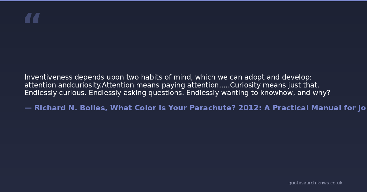 Inventiveness depends upon two habits of mind, which we can adopt and develop: attention andcuriosity.Attention means paying attention.....Curiosity means just that. Endlessly curious. Endlessly asking questions. Endlessly wanting to knowhow, and why?