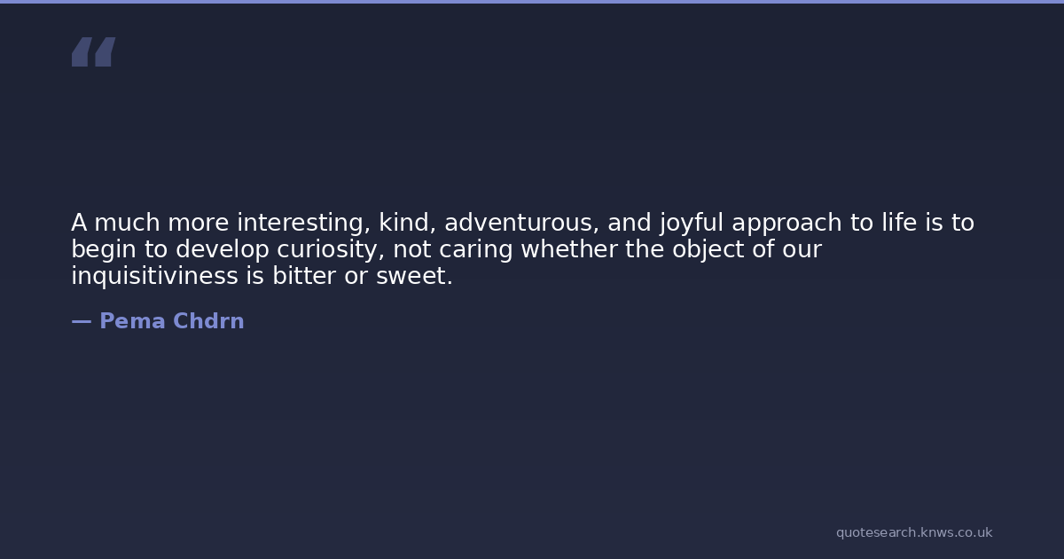 A much more interesting, kind, adventurous, and joyful approach to life is to begin to develop curiosity, not caring whether the object of our inquisitiviness is bitter or sweet.