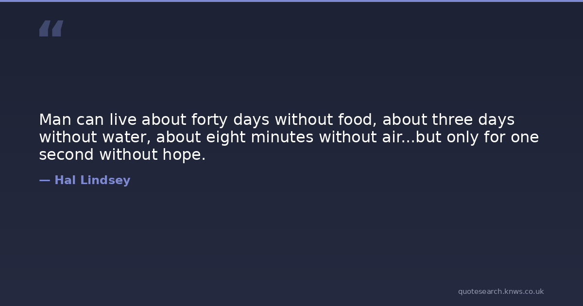 Man can live about forty days without food, about three days without water, about eight minutes without air...but only for one second without hope.