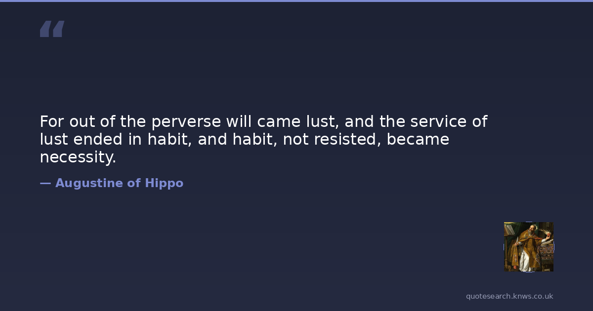 For out of the perverse will came lust, and the service of lust ended in habit, and habit, not resisted, became necessity.