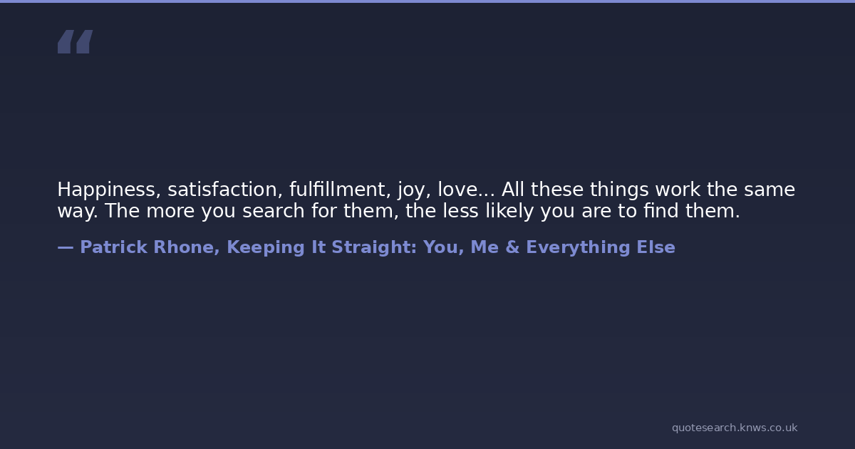 Happiness, satisfaction, fulfillment, joy, love... All these things work the same way. The more you search for them, the less likely you are to find them.