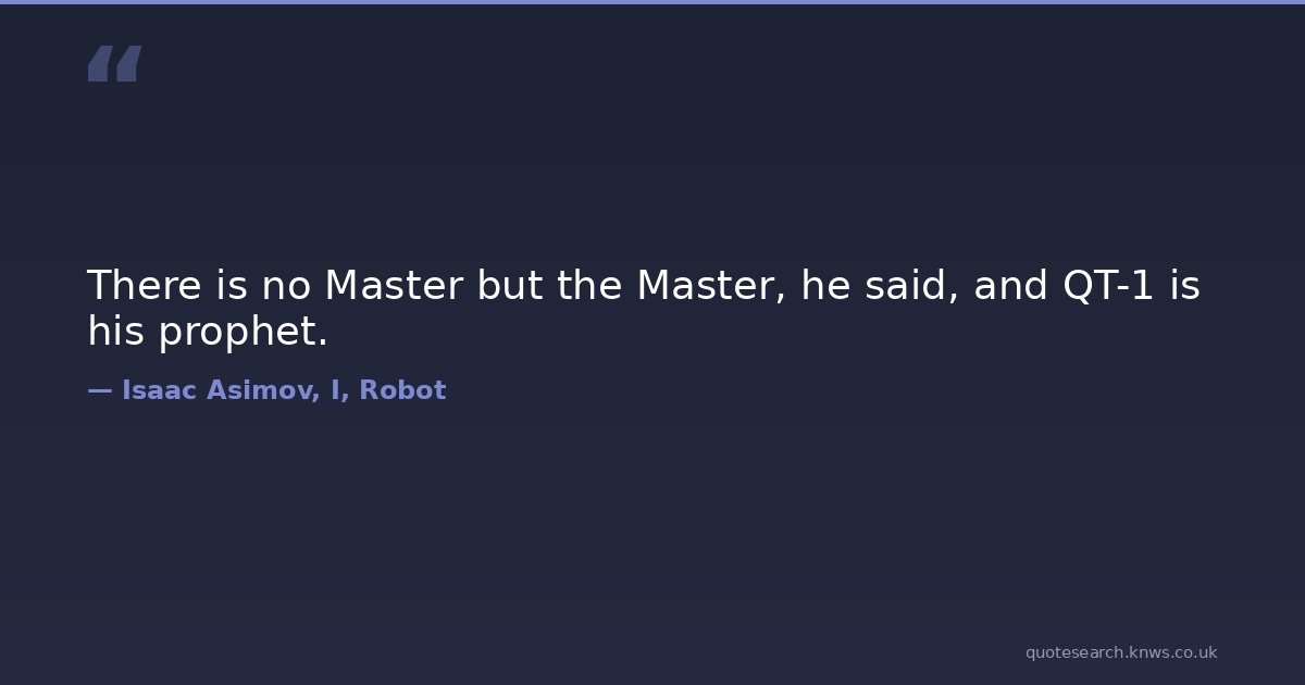 There is no Master but the Master, he said, and QT-1 is his prophet. kindlehighlight Download Image Share on X Share on Facebook Copy Link