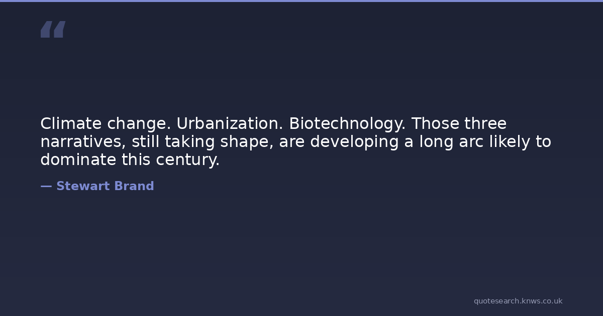 Climate change. Urbanization. Biotechnology. Those three narratives, still taking shape, are developing a long arc likely to dominate this century.