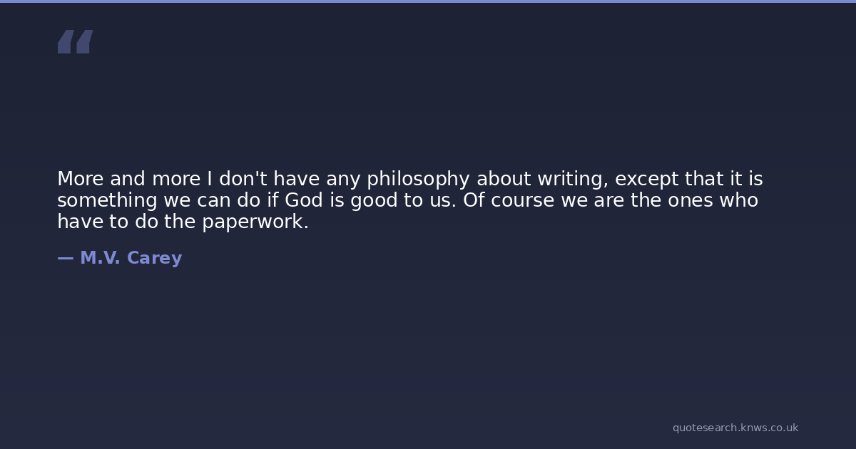 More and more I don't have any philosophy about writing, except that it is something we can do if God is good to us. Of course we are the ones who have to do the paperwork.