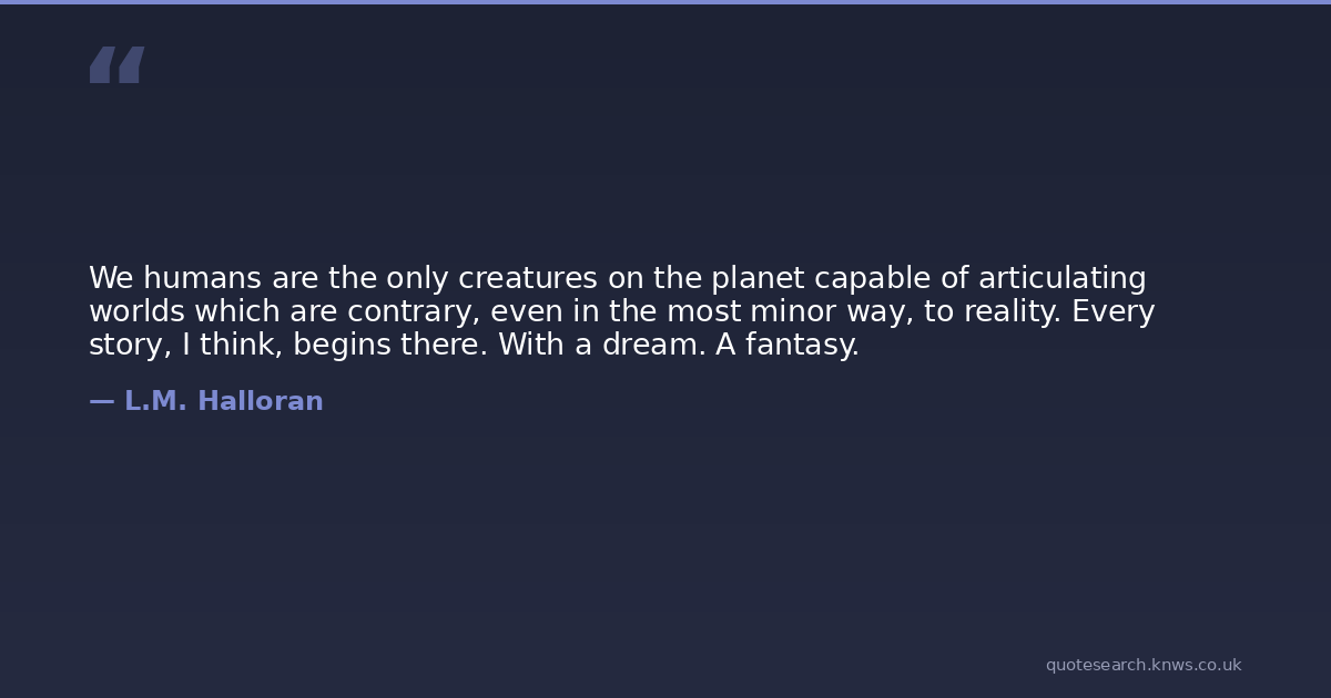 We humans are the only creatures on the planet capable of articulating worlds which are contrary, even in the most minor way, to reality. Every story, I think, begins there. With a dream. A fantasy.