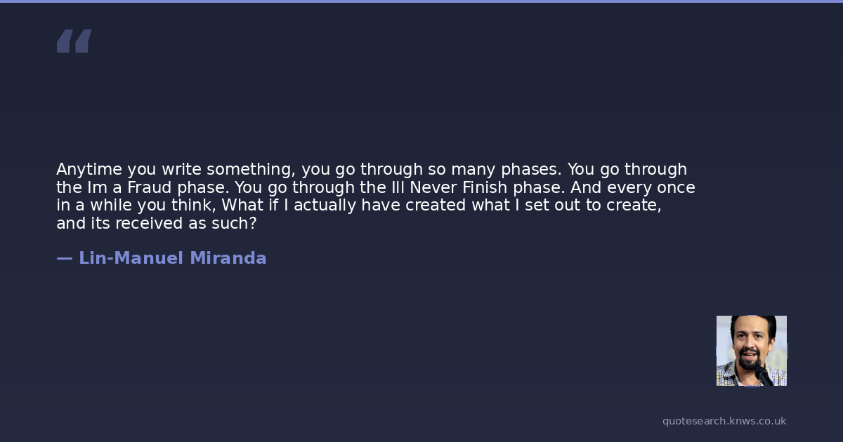 Anytime you write something, you go through so many phases. You go through the Im a Fraud phase. You go through the Ill Never Finish phase. And every once in a while you think, What if I actually have created what I set out to create, and its received as such?