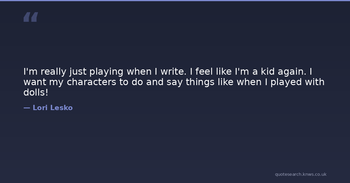 I'm really just playing when I write. I feel like I'm a kid again. I want my characters to do and say things like when I played with dolls!