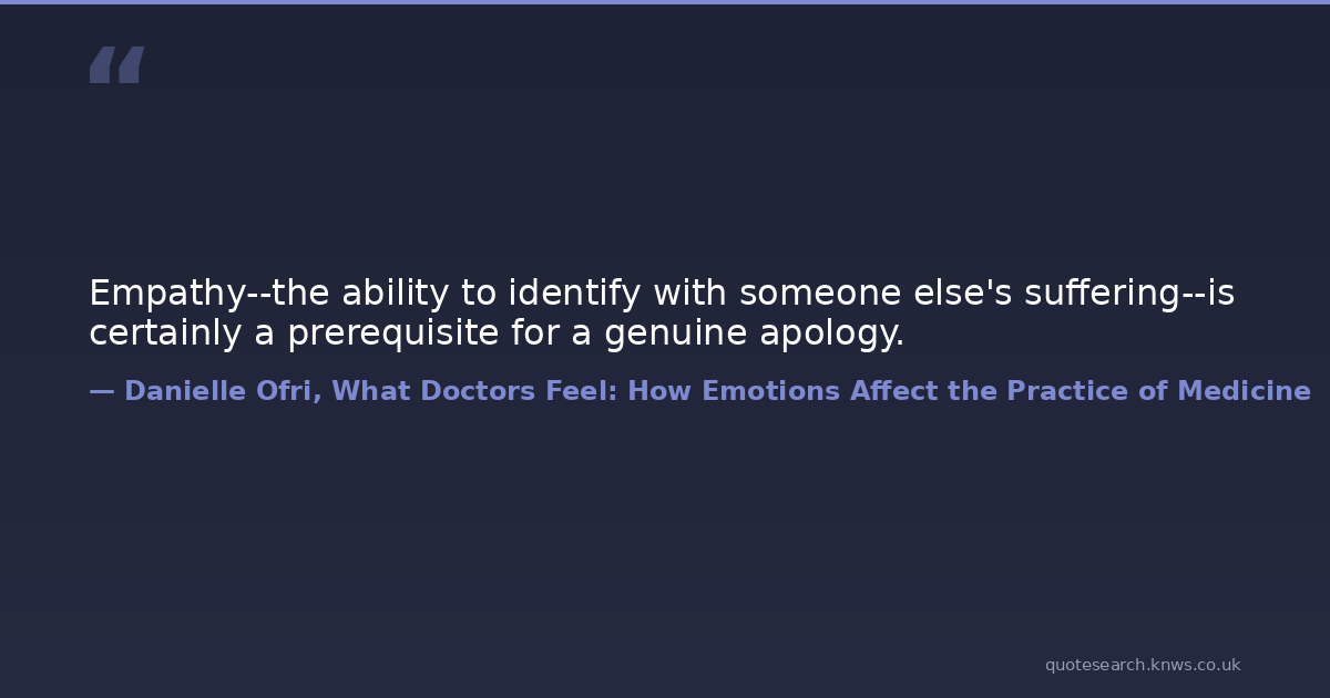 Empathy--the ability to identify with someone else's suffering--is certainly a prerequisite for a genuine apology.