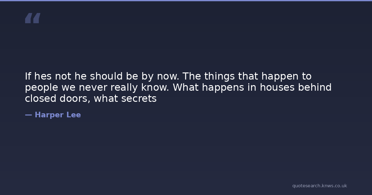 If hes not he should be by now. The things that happen to people we never really know. What happens in houses behind closed doors, what secrets
