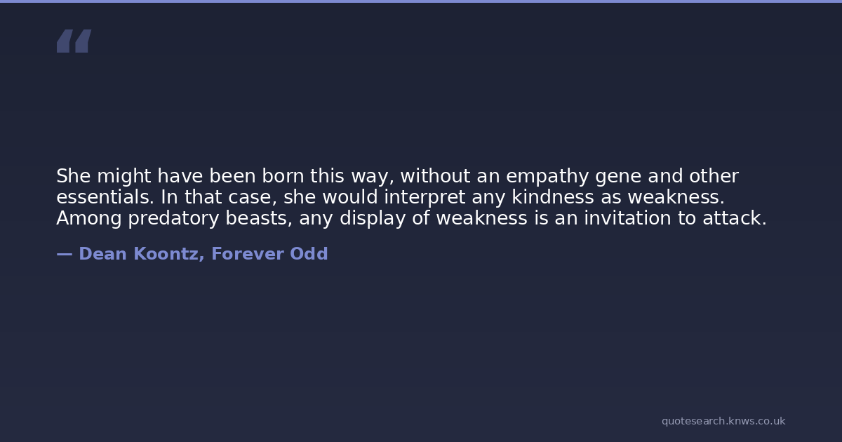 She might have been born this way, without an empathy gene and other essentials. In that case, she would interpret any kindness as weakness. Among predatory beasts, any display of weakness is an invitation to attack.