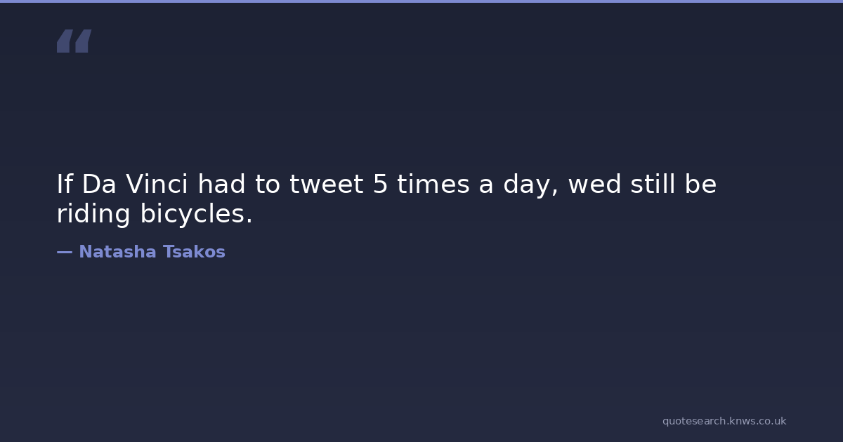 If Da Vinci had to tweet 5 times a day, wed still be riding bicycles.
