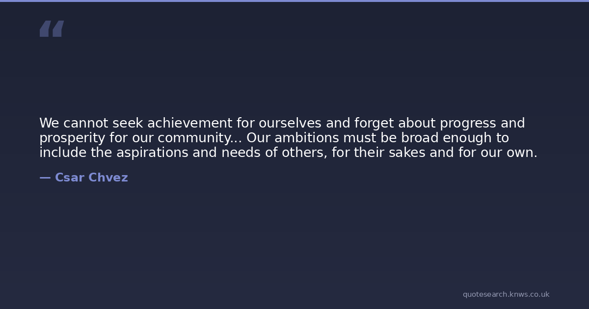 We cannot seek achievement for ourselves and forget about progress and prosperity for our community... Our ambitions must be broad enough to include the aspirations and needs of others, for their sakes and for our own.