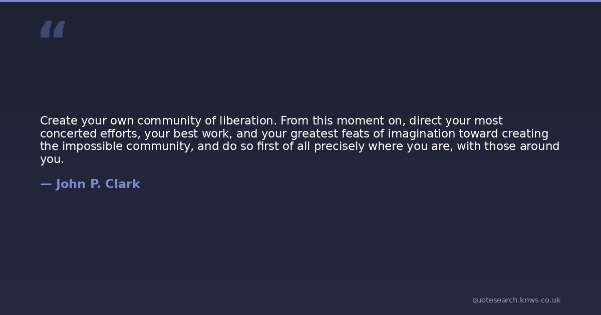 Create your own community of liberation. From this moment on, direct your most concerted efforts, your best work, and your greatest feats of imagination toward creating the impossible community, and do so first of all precisely where you are, with those around you.