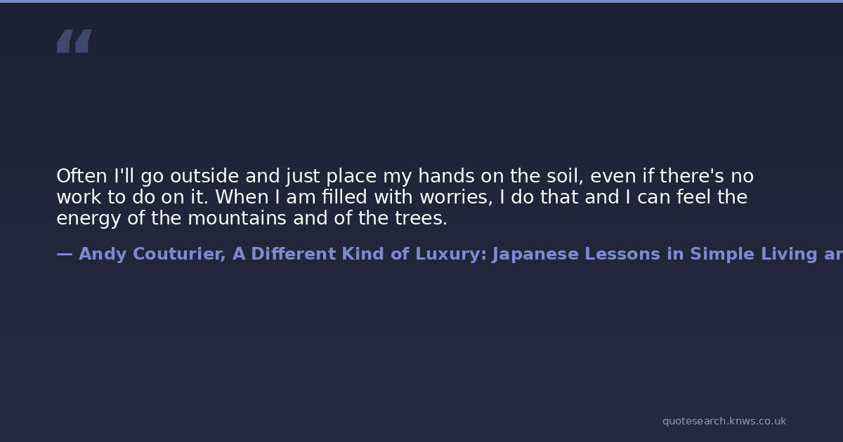 Often I'll go outside and just place my hands on the soil, even if there's no work to do on it. When I am filled with worries, I do that and I can feel the energy of the mountains and of the trees.