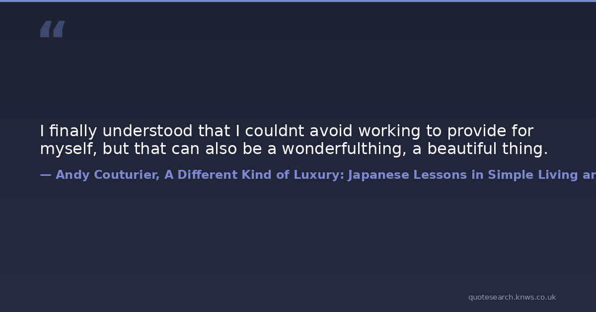 I finally understood that I couldnt avoid working to provide for myself, but that can also be a wonderfulthing, a beautiful thing.