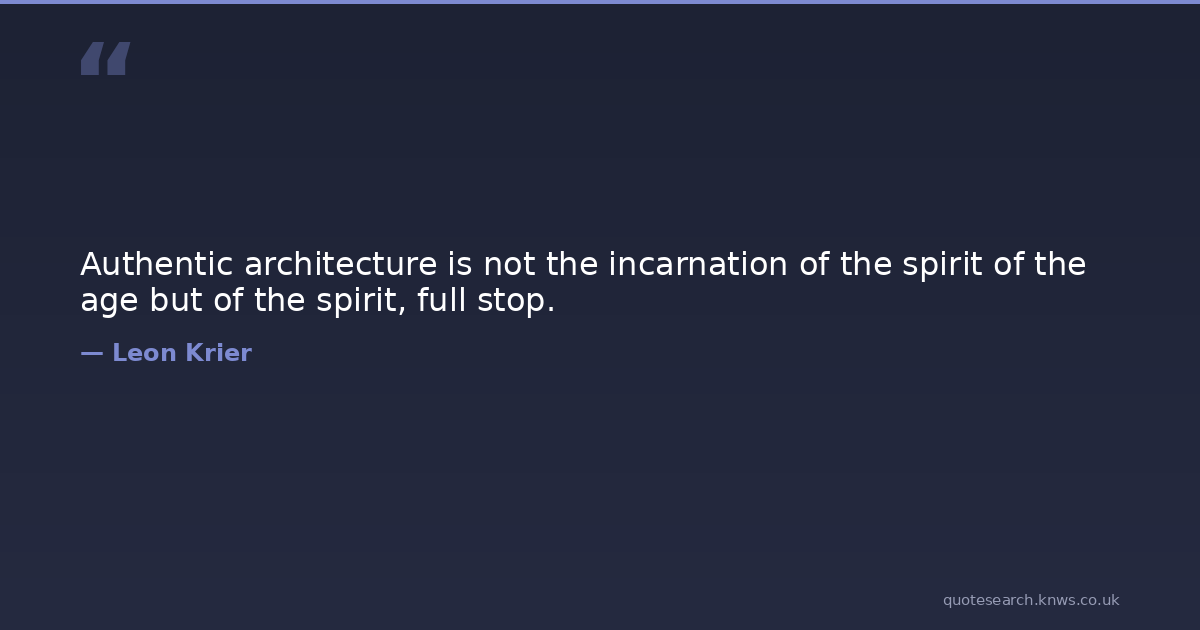 Authentic architecture is not the incarnation of the spirit of the age but of the spirit, full stop.