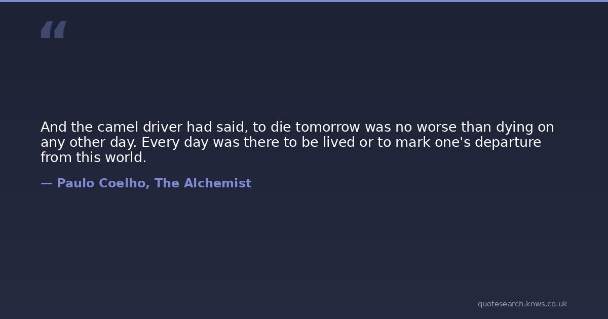 And the camel driver had said, to die tomorrow was no worse than dying on any other day. Every day was there to be lived or to mark one's departure from this world.