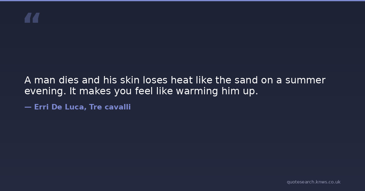 A man dies and his skin loses heat like the sand on a summer evening. It makes you feel like warming him up.
