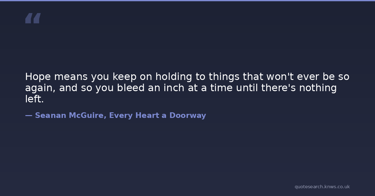 Hope means you keep on holding to things that won't ever be so again, and so you bleed an inch at a time until there's nothing left.