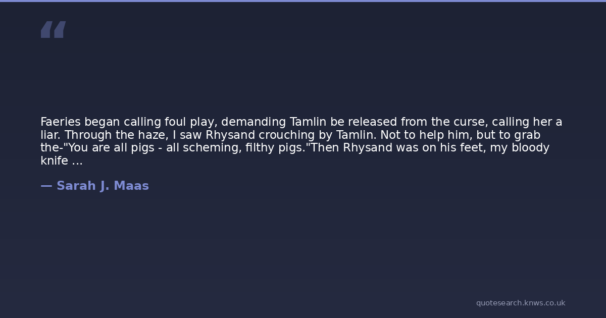 Faeries began calling foul play, demanding Tamlin be released from the curse, calling her a liar. Through the haze, I saw Rhysand crouching by Tamlin. Not to help him, but to grab the-"You are all pigs - all scheming, filthy pigs."Then Rhysand was on his feet, my bloody knife in his hands. He launched himself at Amarantha, swift as a shadow, the ash dagger aimed at her throat.She lifted a hand - not even bothering to look - and he was blasted back by a wall of white light.But the pain paused for a second, long enough for me to see him hit the ground and rise again and lunge for her - with hands that now ended in talons. He slammed into the invisible wall Amarantha had raised around herself, and my pain flickered as she turned to him."You traitorous piece of filth," she seethed at Rhysand. "You're just as bad as the human beasts." One by one, as if a hand were shoving them in, his talons pushed back into his skin, leaving blood in their wake. He swore, low and vicious. "You were planning this all along.