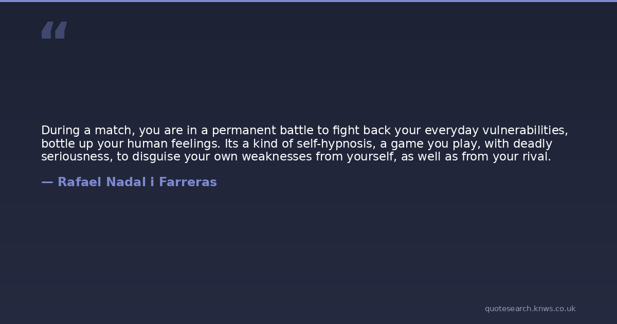 During a match, you are in a permanent battle to fight back your everyday vulnerabilities, bottle up your human feelings. Its a kind of self-hypnosis, a game you play, with deadly seriousness, to disguise your own weaknesses from yourself, as well as from your rival.