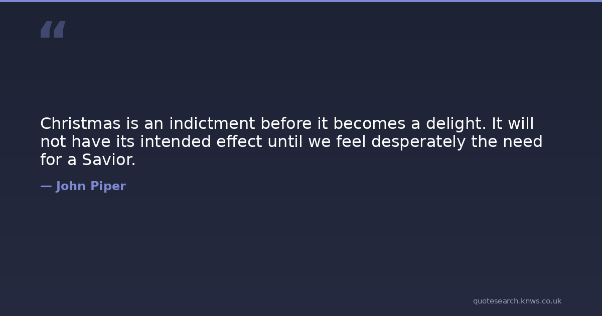 Christmas is an indictment before it becomes a delight. It will not have its intended effect until we feel desperately the need for a Savior.