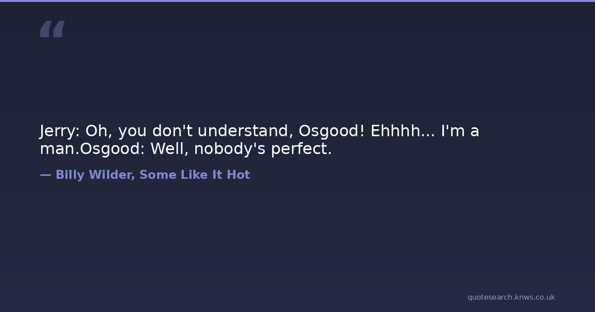 Jerry: Oh, you don't understand, Osgood! Ehhhh... I'm a man.Osgood: Well, nobody's perfect. films jack-lemmon movies perfection Download Image Share on X Share on Facebook Copy Link