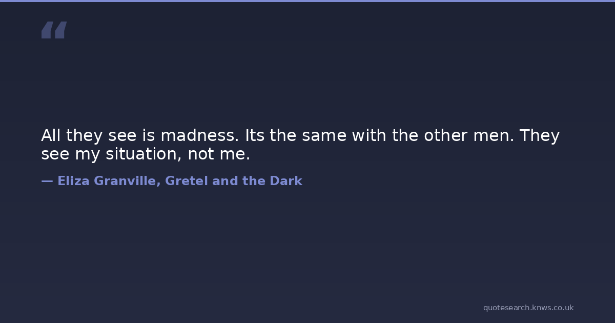 All they see is madness. Its the same with the other men. They see my situation, not me.
