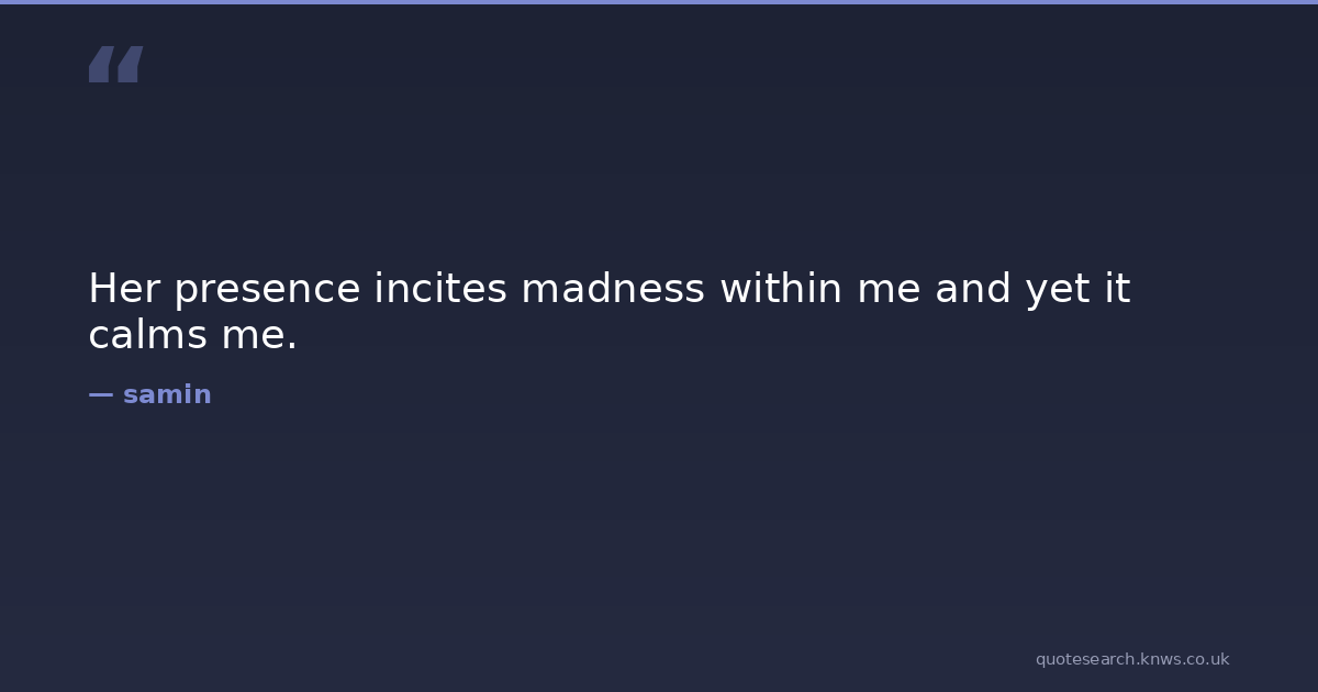 Her presence incites madness within me and yet it calms me. her love madness Download Image Share on X Share on Facebook Copy Link