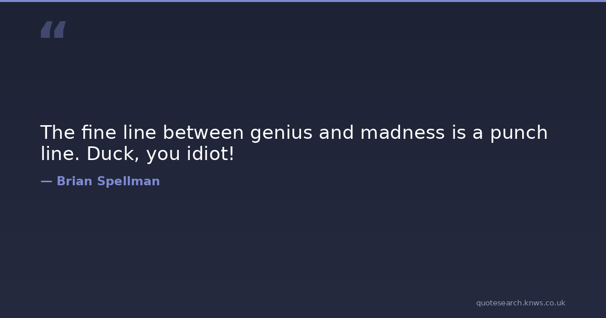 The fine line between genius and madness is a punch line. Duck, you idiot! aphorisms genius madness Download Image Share on X Share on Facebook Copy Link