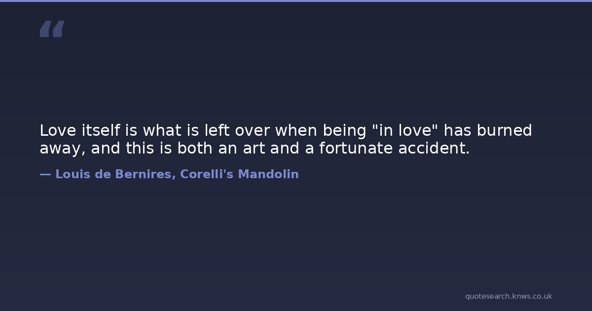 Love itself is what is left over when being "in love" has burned away, and this is both an art and a fortunate accident.