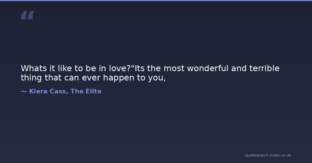 Whats it like to be in love?"Its the most wonderful and terrible thing that can ever happen to you,