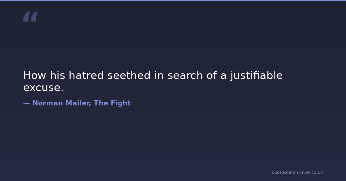 How his hatred seethed in search of a justifiable excuse. excuse hatred Download Image Share on X Share on Facebook Copy Link