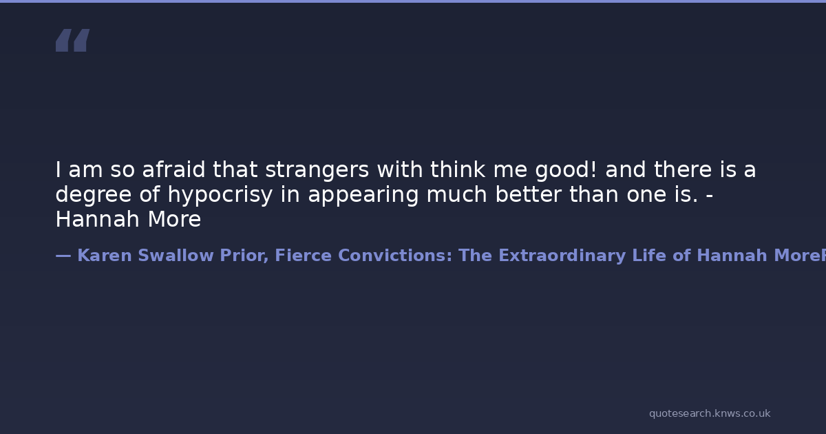I am so afraid that strangers with think me good! and there is a degree of hypocrisy in appearing much better than one is. - Hannah More