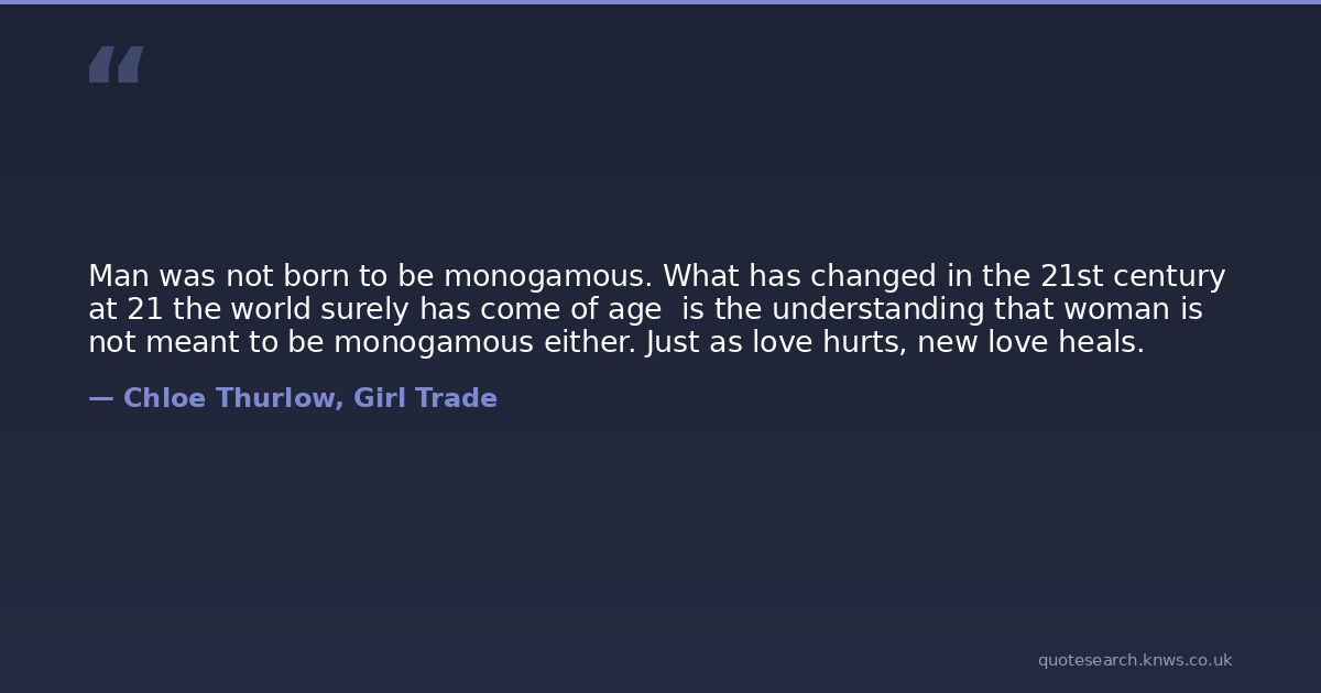 Man was not born to be monogamous. What has changed in the 21st century at 21 the world surely has come of age is the understanding that woman is not meant to be monogamous either. Just as love hurts, new love heals.