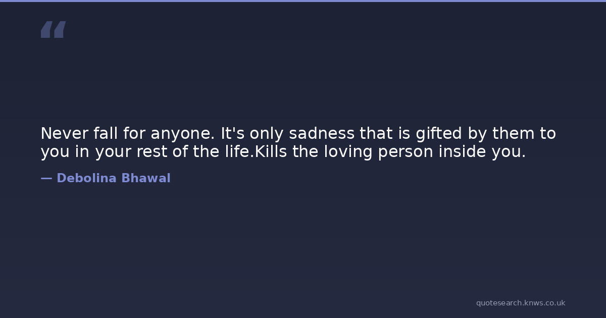 Never fall for anyone. It's only sadness that is gifted by them to you in your rest of the life.Kills the loving person inside you.