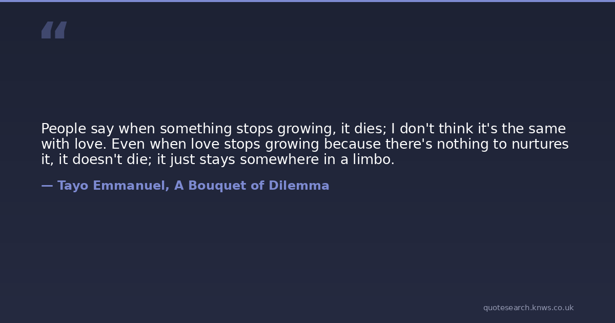 People say when something stops growing, it dies; I don't think it's the same with love. Even when love stops growing because there's nothing to nurtures it, it doesn't die; it just stays somewhere in a limbo.
