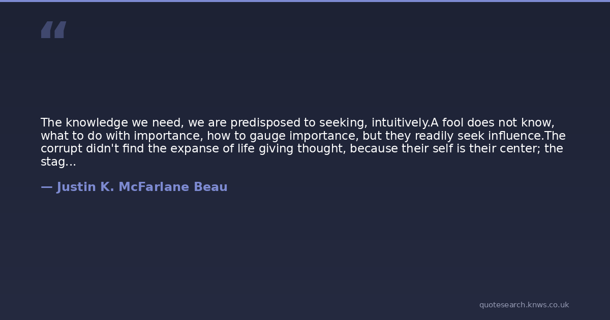 The knowledge we need, we are predisposed to seeking, intuitively.A fool does not know, what to do with importance, how to gauge importance, but they readily seek influence.The corrupt didn't find the expanse of life giving thought, because their self is their center; the stagnant find it hard to revolve.The wise do not subscribe to the fodder that feeds the herd, because they are not predisposed to being swept along in banal minutiae.
