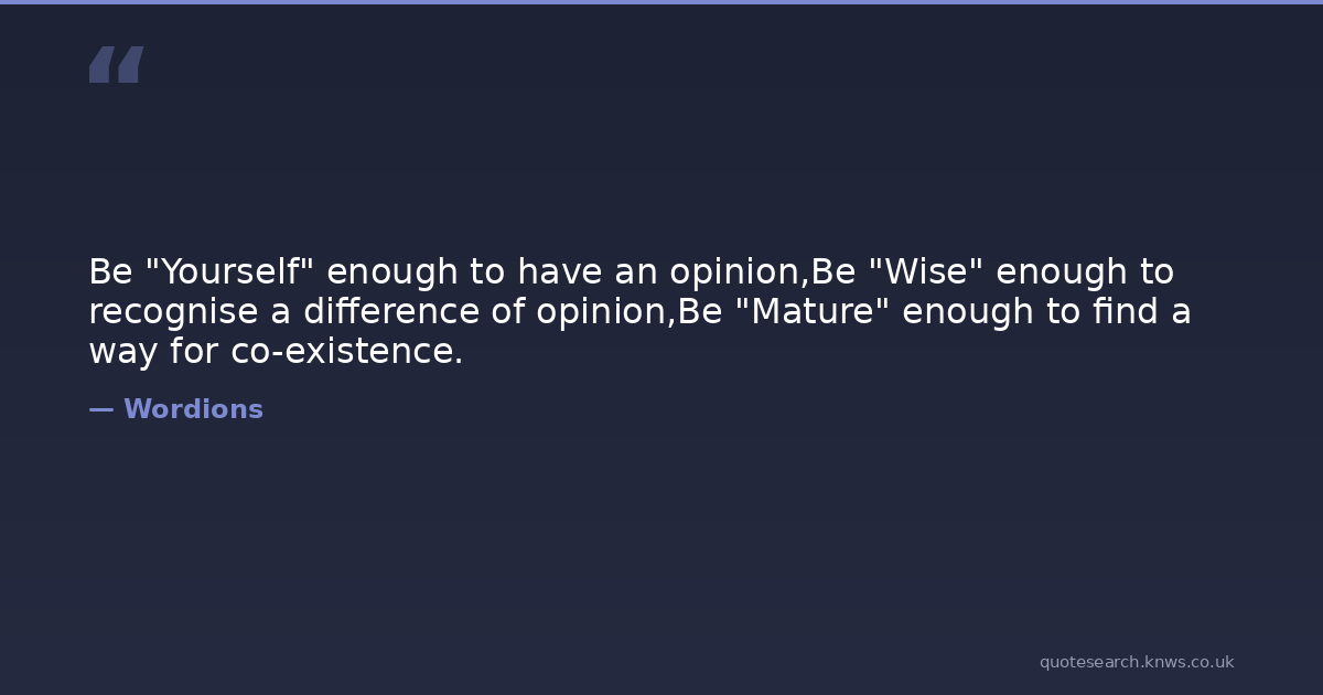 Be "Yourself" enough to have an opinion,Be "Wise" enough to recognise a difference of opinion,Be "Mature" enough to find a way for co-existence.