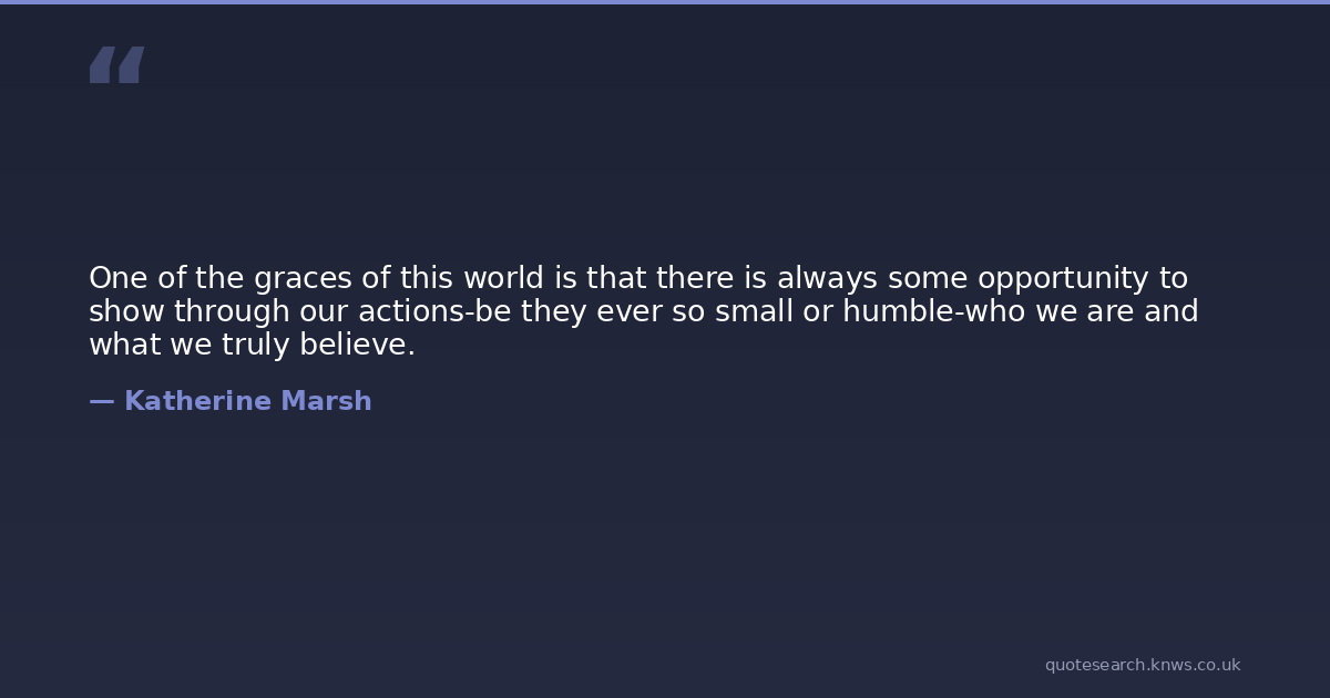 One of the graces of this world is that there is always some opportunity to show through our actions-be they ever so small or humble-who we are and what we truly believe.