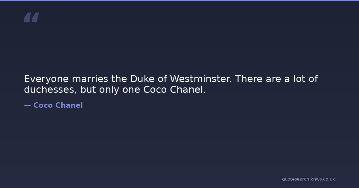 Everyone marries the Duke of Westminster. There are a lot of duchesses, but only one Coco Chanel.